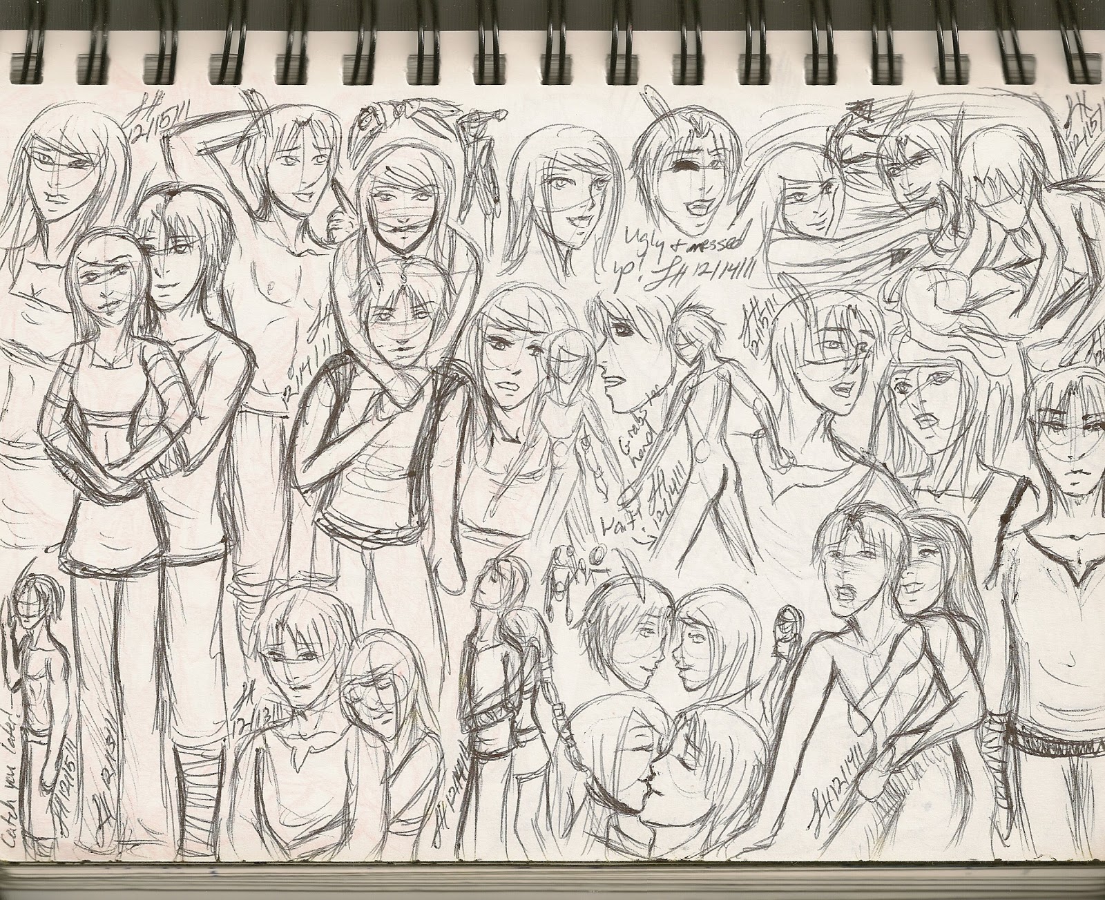 Man, I really need to keep these sketch pages more organized. Apparently some of the sketches I’ve posted are from 2011 and earlier but I take so long to fill up a sketch book that I forget. I don’t really check the dates either but for now if you really want to know when I did a sketch you can tell by the date I usually sign on the pages. Also I’m losing my buffer so I’m going to have to start sketching a page a day again. I fell off that wagon sometime at the end of last year. Whoops. lol