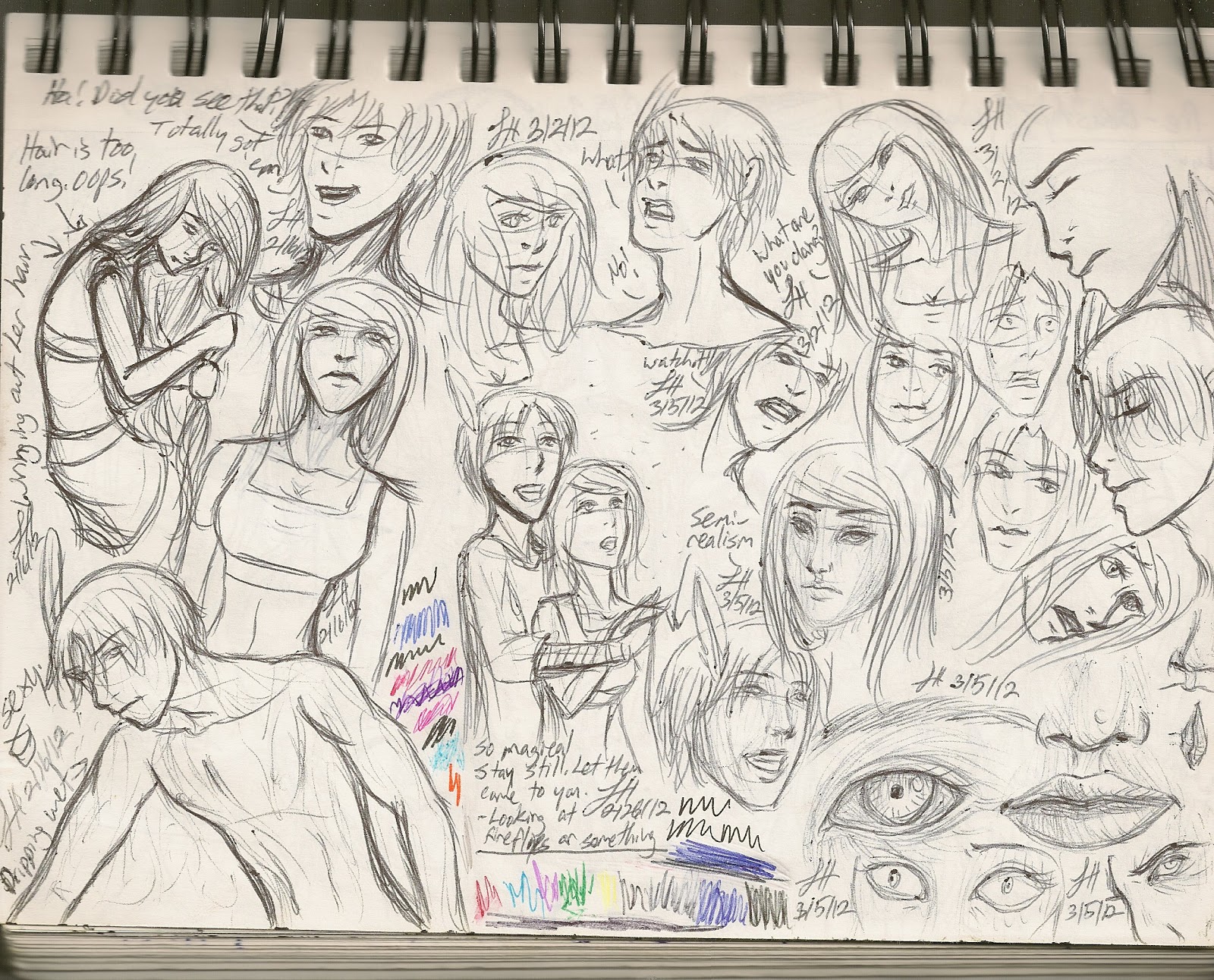 Ah, I finished a sketchbook! It’s my large 9×12 Strathmore 400 Series Recycled Paper Pad which apparently I still need to review…lol Whoops, I’ll have to get on that. Well this was one of my first sketchbooks. I didn’t even start dating my work then so I think I got it in either 2006 or 2007…We’ll go with the later but since I finished it in 2014 it’s taken about 7 years to fill. XD To be fair I do use up as much white space as I can so I went back to pages that I hadn’t fully used yet. lol Still it’s a good feeling. I’m already using a new one, it’s probably a little over half way full of sketches for school but I plan on going back to fill in all the extra white space.
