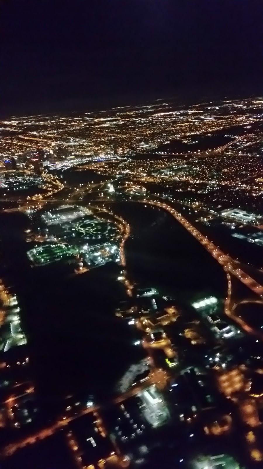 Our flight back home. It was cool to see the city lights as we descended. Don’t get to see that view everyday.