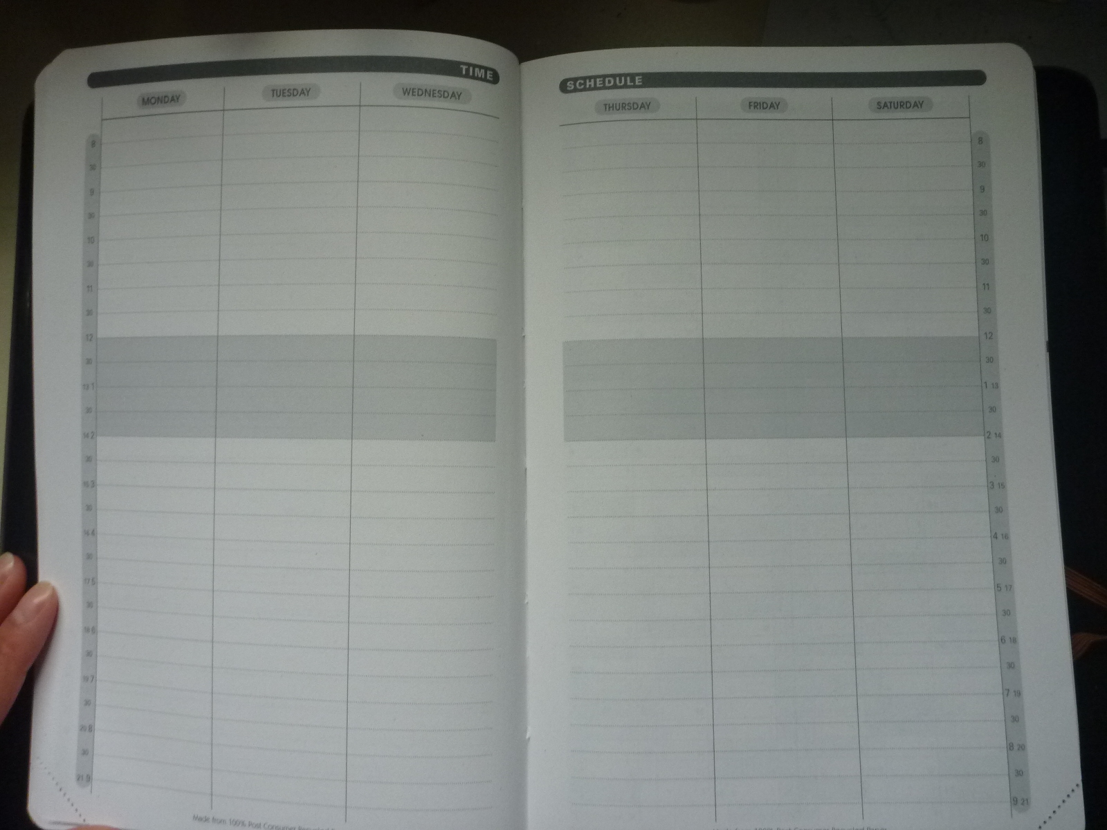 Here is a close up of the nice texture of the cover. I actually like this cover, you could probably paint or draw on it if you wish. That would have been a lot of fun but I figured my mom had better uses for it than me since I planned on using the House of Doolittle Planner. It’s because I preferred the hourly format in those planners compared to this layout (more further down).