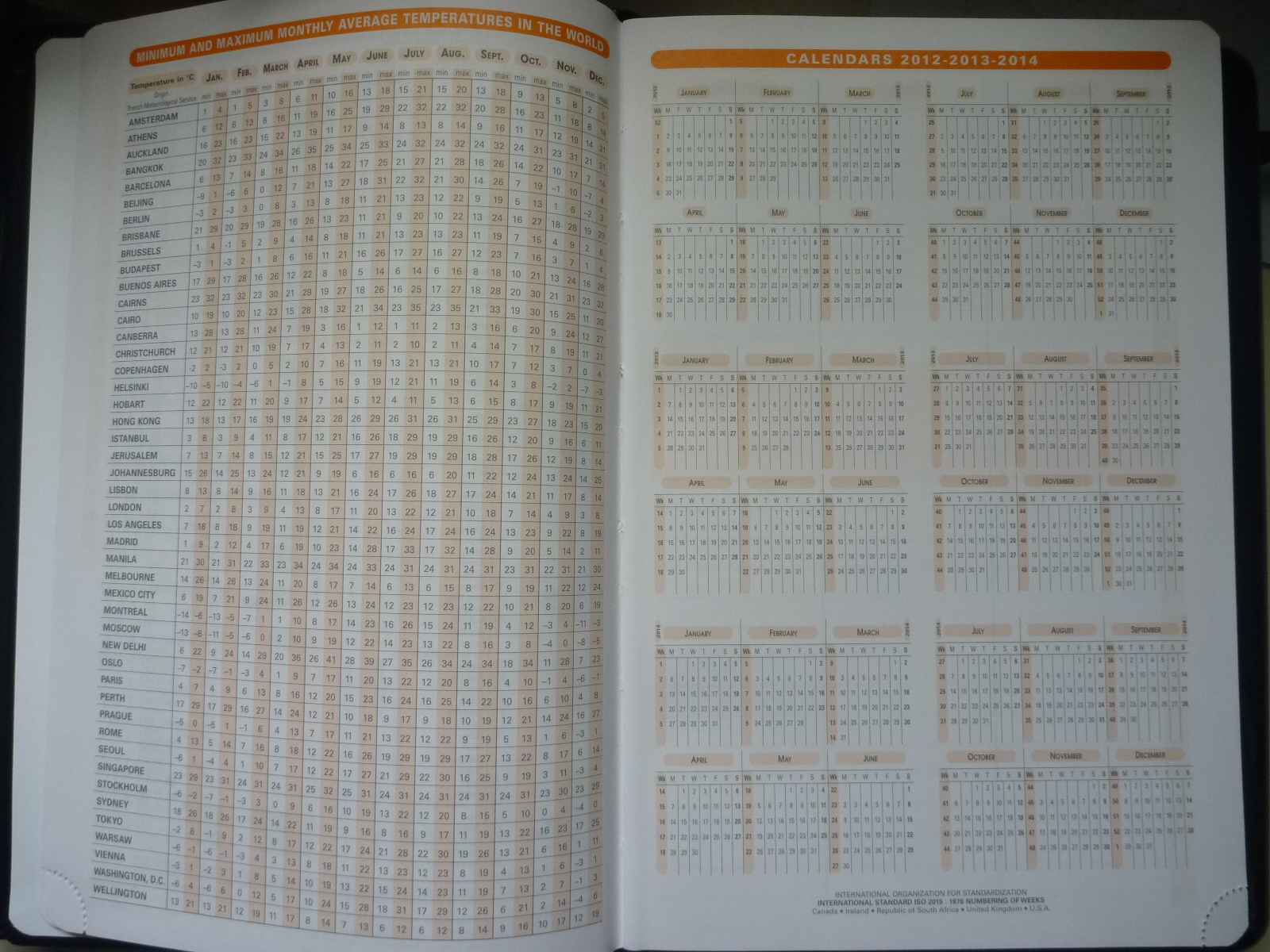 More international information, this time, temperature. lol It shows the temperatures of the world in Celsius instead of Fahrenheit. Crazy Americans…we had to change our unit systems….Then on the other page is a 3 year look ahead, 2012-2014, which may be useful if you need to look that far ahead.